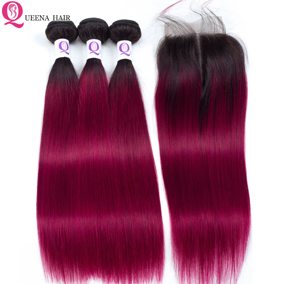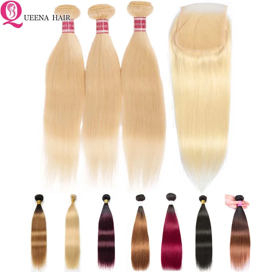 Queena 613 Bundles With Frontal Brazilian Straight Human Hair Blonde Bundles With Closure Black Lace Frontal With Bundles Remy