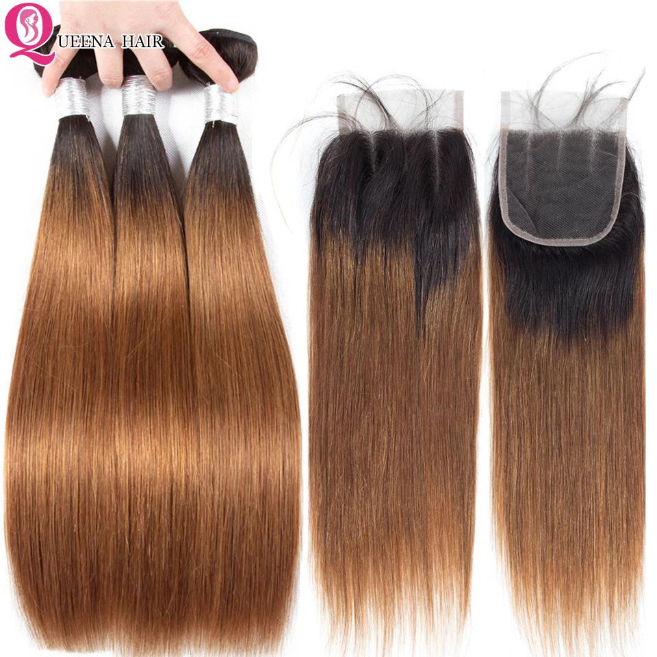 Best Price of Straight Bundles With Closure Ombre 1B/27 613 Blonde Bundles With Closure Brazilian Hair Weave Bund