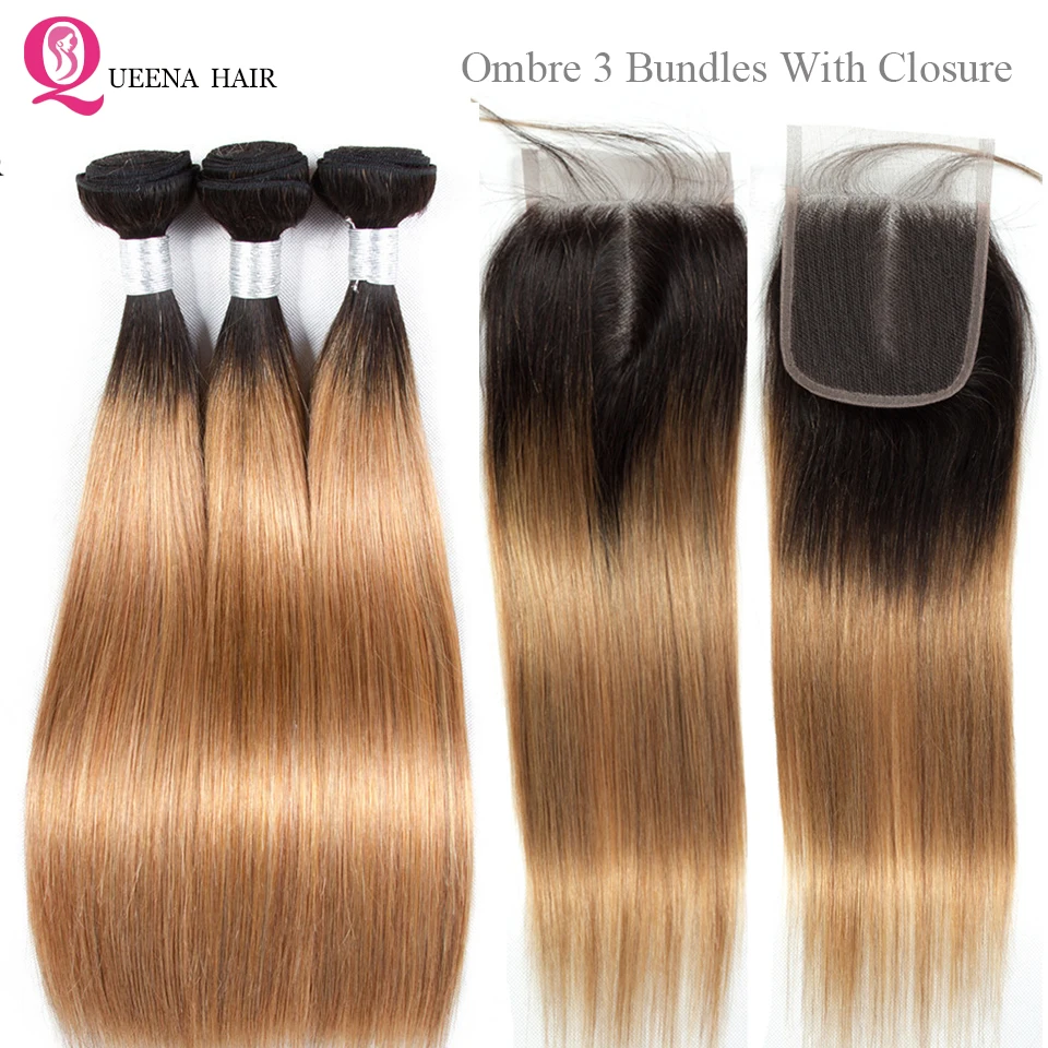 Straight Bundles With Closure Ombre 1B/27 613 Blonde Bundles With Closure Brazilian Hair Weave Bund