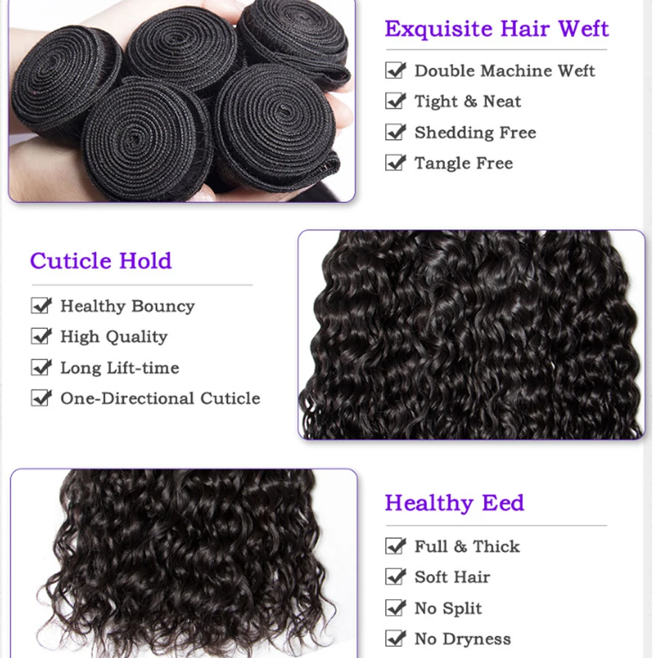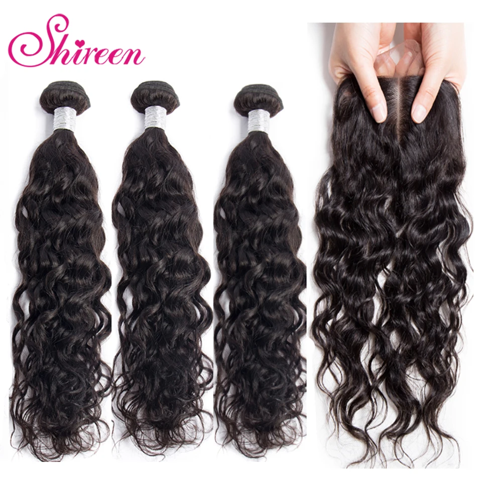 Shireen Hair Natural Water Wave Bundles With Closure Natural Color NonRemy Human Hair Weave 3 Bundles with Closure Peruvian Hair